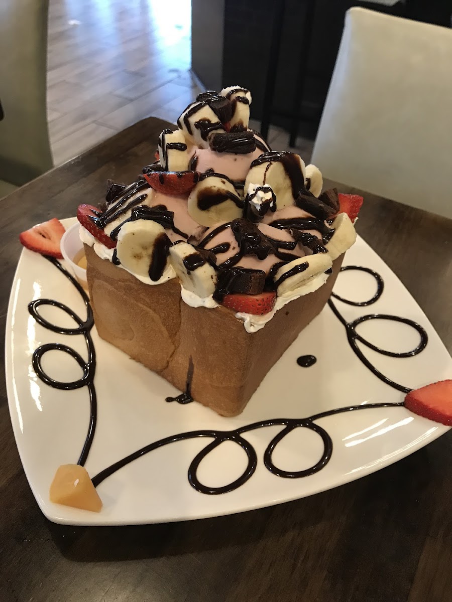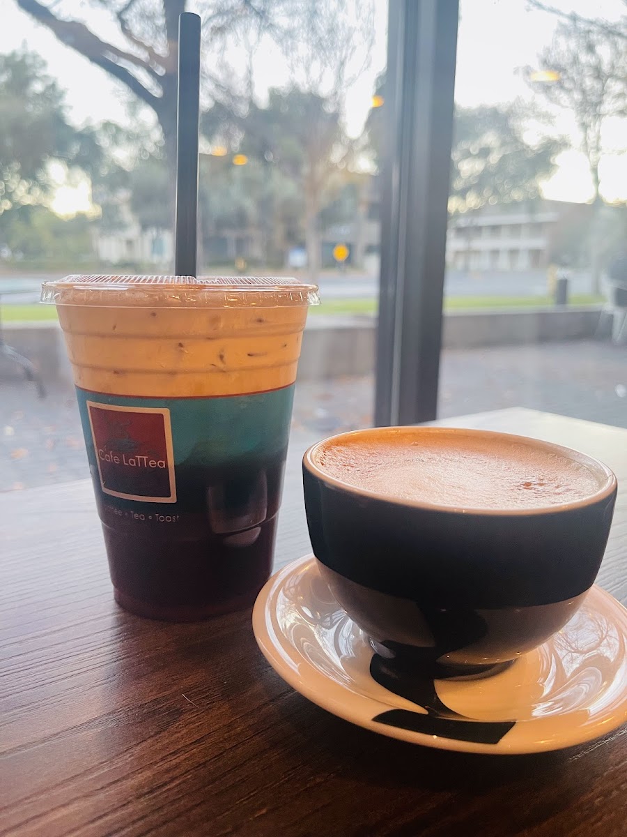 Welcome to Cafe LaTTea! As the owner of this cozy coffee and tea cafe located in Cupertino, I am excited to share some highlights and my feelings about our dishes with you. Our menu features a wide variety of teas, including flavored options such as Honey Tea, Passion Fruit Tea, and Strawberry Peach Tea. One of our popular items is the starfall coffee, which offers a bold flavor with a creamy touch. We also serve delightful treats like the pistachio honey toast and the Almond Gelato Honey Toast. These desserts are made with care and are perfect for those with a sweet tooth.