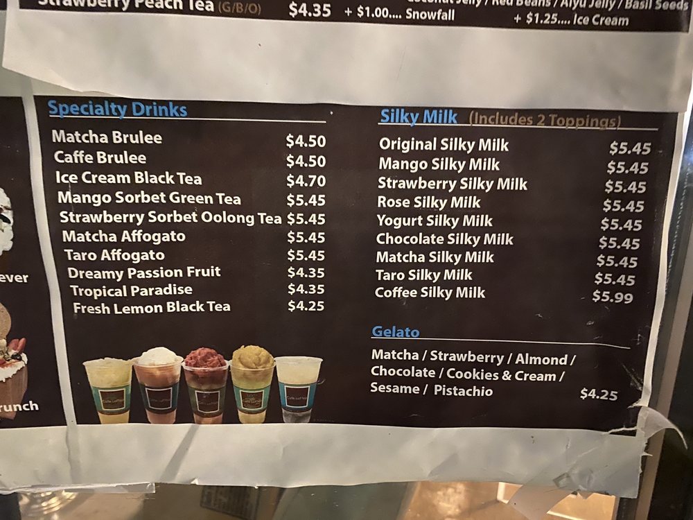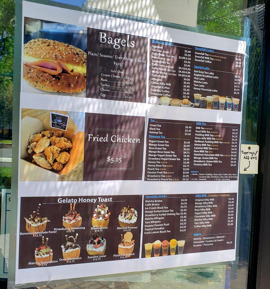 Cafe LaTTea is a popular coffee and tea cafe located in Cupertino, CA. This classy yet casual spot offers a range of flavored teas like Honey Rose Tea and Mango Yogurt Green Tea, as well as coffee options like Caffe Mocha and White Mocha. Customers rave about the pistachio honey toast and boba milk tea, praising the quality and flavor of the drinks. The boba pearls in their drinks are described as chewy and flavorful without being overly sweet. The cafe also serves food items like Salty Fried Chicken and various desserts. With amenities like free Wi-Fi, outdoor seating, and friendly staff, Cafe LaTTea is a great place to study, catch up with friends, or satisfy your sweet tooth. Don't miss out on their delightful honey toast and quality milk tea options when you visit!